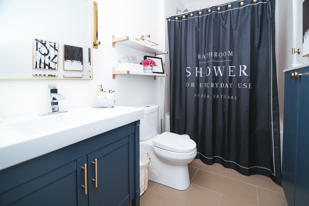 If the house does not have a shower, a special waterproof curtain is required when using the bath. When buying it, we do not recommend focusing solely on the price: more expensive curtain made of high-quality materials will last much longer, will not tear and will become an excellent decor.