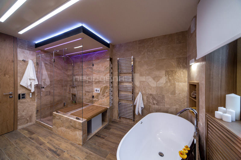 To create a beautiful bathroom interior, both natural materials were used to make the room graceful and noble, as well as modern, high-tech materials, without which the creation of comfortable housing is now impossible.