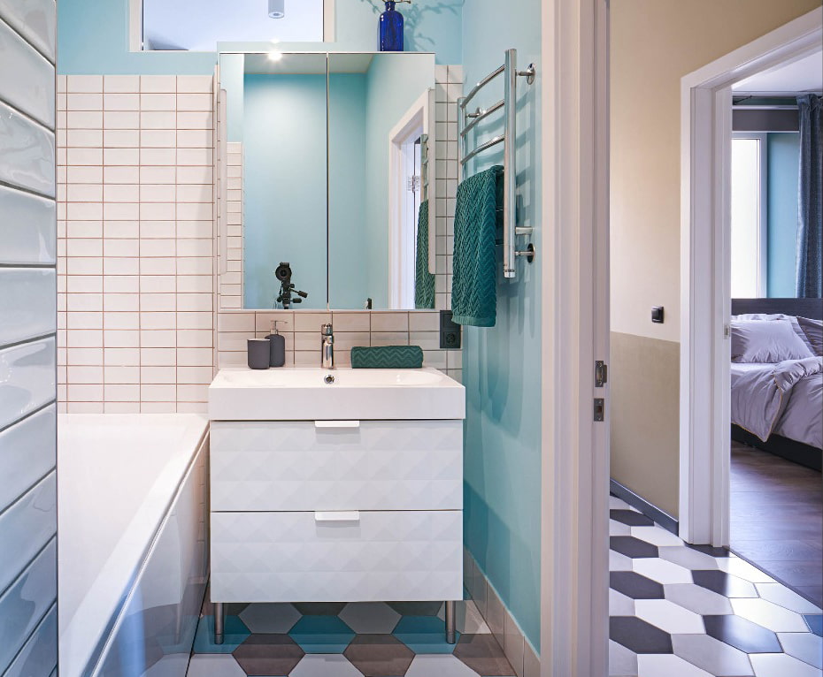 The interior of the bathroom includes the bowl itself or a shower cabin, a sink, a toilet (in the case of a combined bathroom), a washing machine, storage space... Start planning with the largest item.