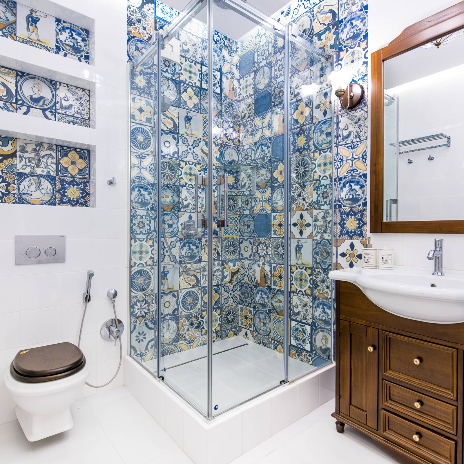 As a rule, paint, wall panels or ceramic tiles are used to decorate a bathroom with a shower. Ceramics of various shapes are often combined with each other: square, rectangular, "hog" and "honeycomb".