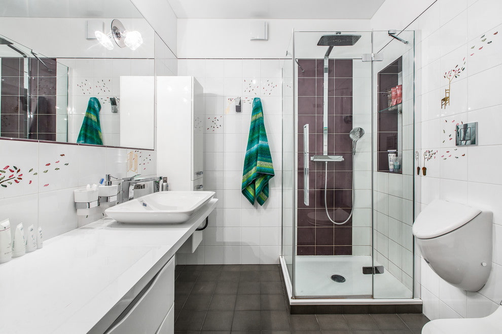It is also recommended to immediately decide on the style - whether it will be a classic interior in light colors with elegant furniture and semi-antique plumbing or, for example, a functional modern setting with a bias towards a loft. Showers will fit into any interior.