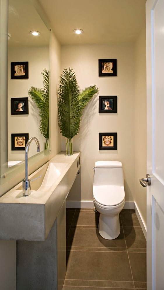 - Glossy floors, walls or ceilings will reflect light and visually enlarge the interior of a small toilet.
