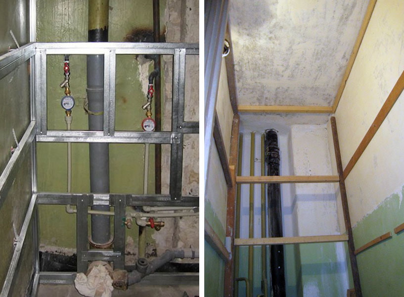 Pipes are common property. It is important that in the event of a leak or a check, access to the devices remains open, therefore it is not advisable to construct blind structures. The main danger of walled up pipes is that when they start to leak, the process will go unnoticed. And when the neighbors from below notice the accident, you will have to urgently open the walls.