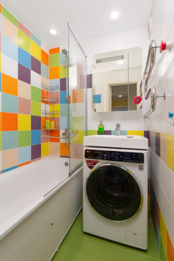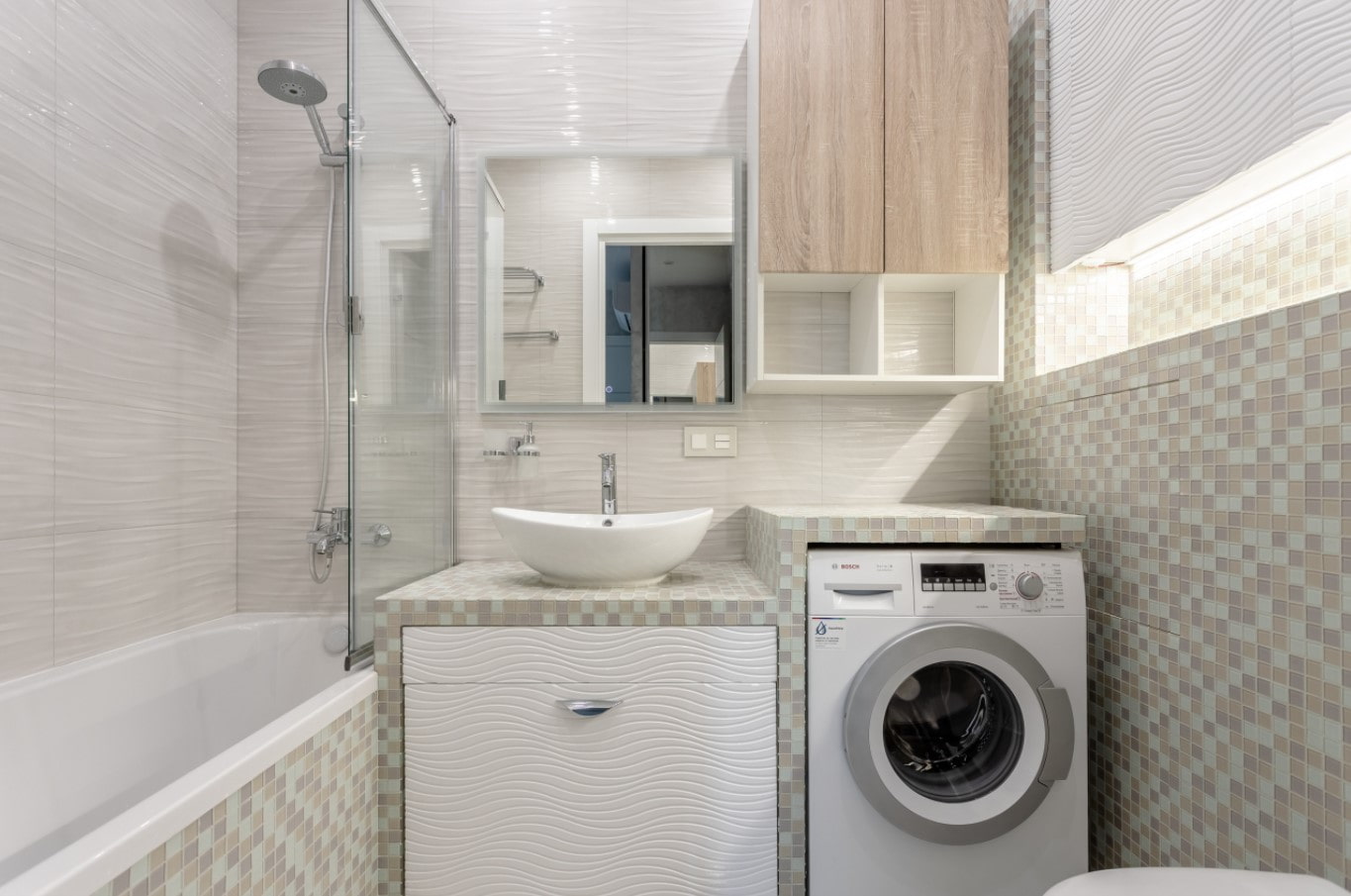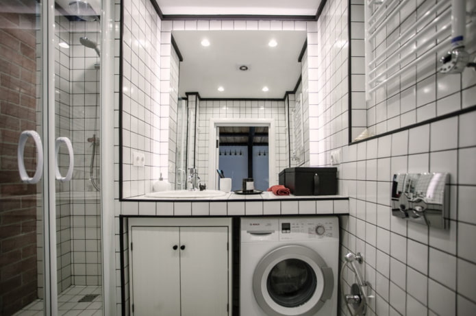 If possible, it is better to take the equipment out of the bathroom, but if there is simply nowhere to do it (the kitchen space is also limited) - build the washer under the countertop next to the sink... The second way is to use bowls with special notches, which allow you to conveniently place the machine even in a narrow space.
