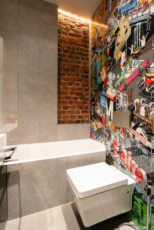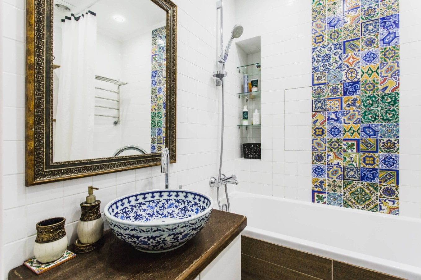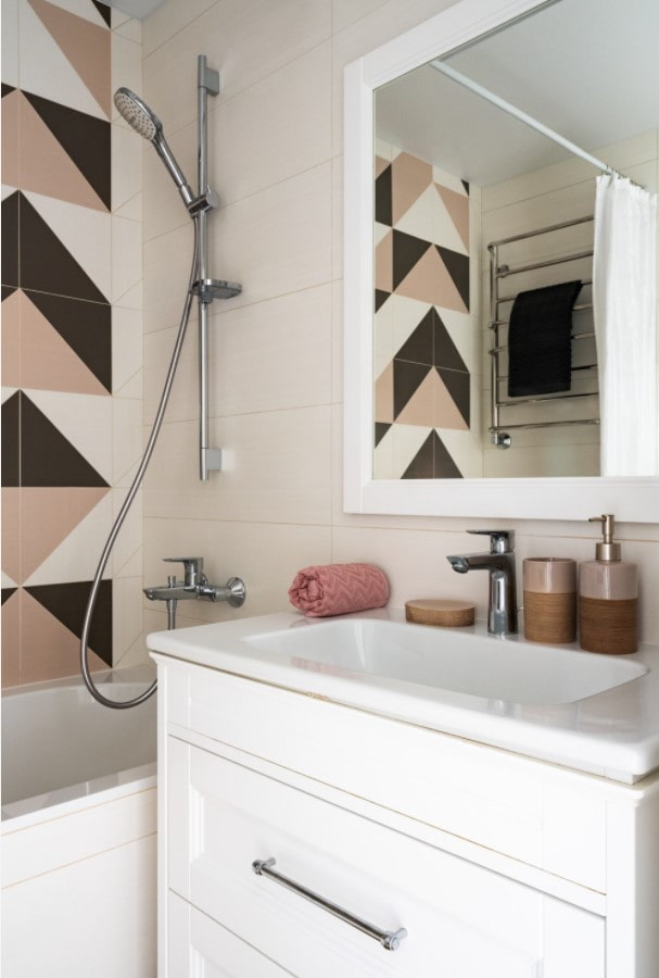 Don't like monochrome interiors? Play with color! Bright tiles will add personality to the room. Accent wall in combination with monochromatic companions will set the necessary dynamics.
