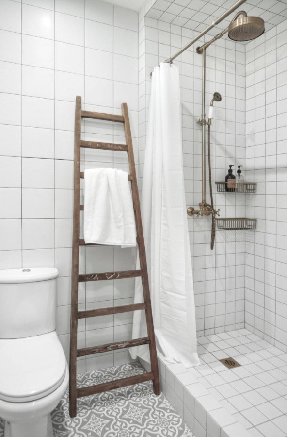 The second thing you shouldn't be afraid of in a small bathroom is open shelves. Yes, keeping the door closed helps to avoid visual noise. But if you organize a small bathroom so that only aesthetic things are stored on the shelves - like beautiful textiles or stylish jars for cream / liquid soap, additional decor may not be needed at all.