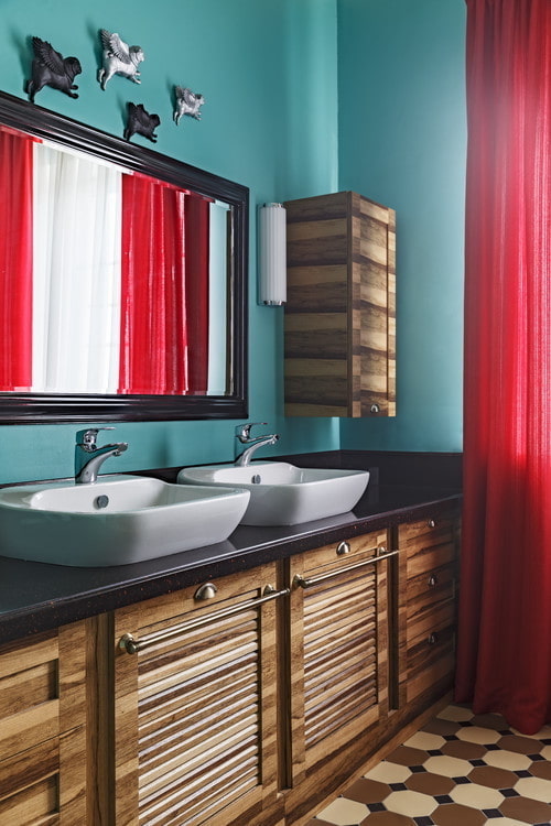 - Wooden furniture. The appearance of expensive solid wood will fill the bathroom with warmth and comfort. It is eco-friendly, durable and suitable for many styles - classic, loft, eco, country. Furniture made of wood can be either natural, coated with a moisture-repellent agent, or painted.