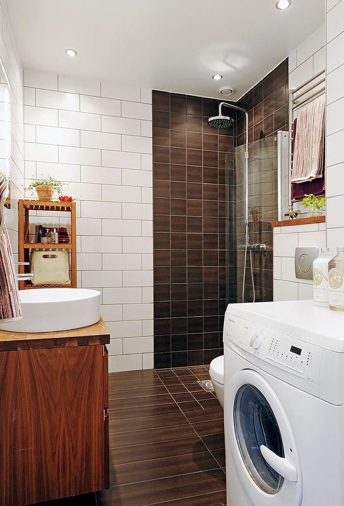 - In a combined bathroom, a large area is welcome zoning: use canvases of two shades, set them at different levels, outline the contours of the zones.