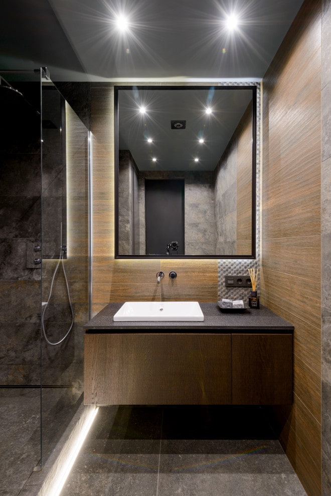 Give preference to MDF structures - in production it is protected with hydrophobic compounds, primer, wax and oils, and also covered with a film or paint. If the aesthetic part and practicality are your priority, choose combined furniture, where the body is made of MDF, and the facades are made of wood. The most suitable species for the bathroom are oak, cherry, ash, beech.