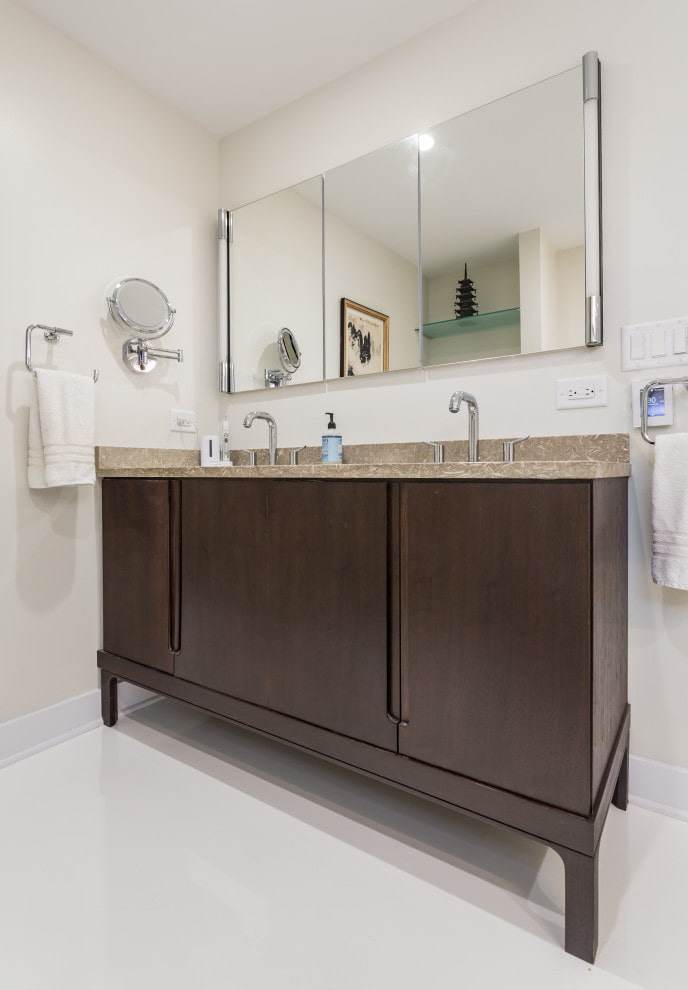 A good way to ensure the durability of your furniture is to lift it up or hang it up. So, water falling on the floor will not affect objects. A nice bonus: raised furniture will make the room seem more spacious.