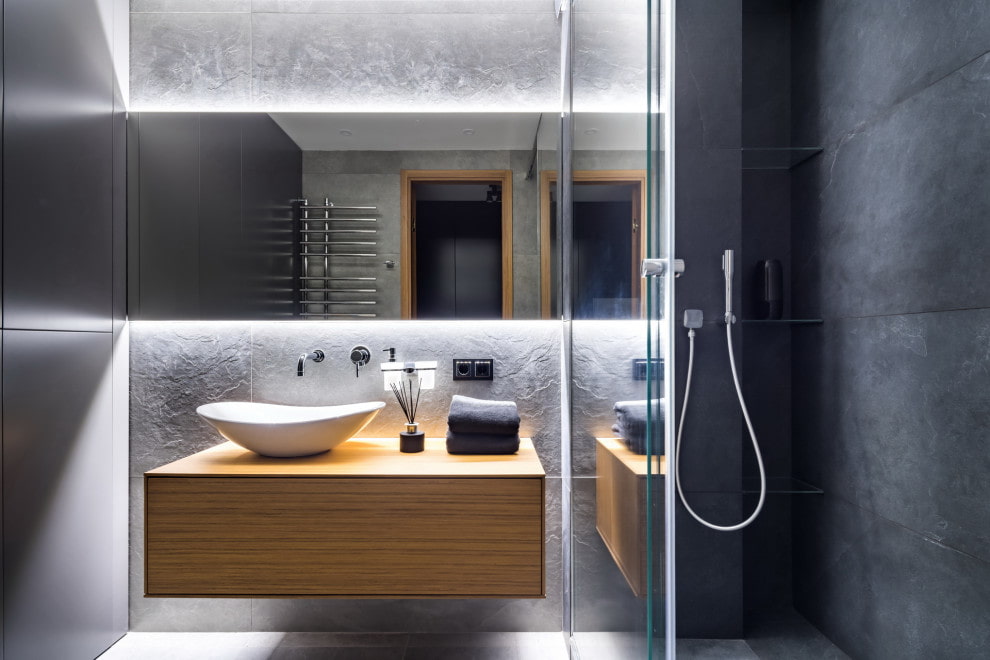 It is important to provide for several lighting scenarios so that the use of the bathroom is as comfortable as possible. The mirror should be illuminated to avoid ugly shadows on the face, and spots over the bathroom or shower.