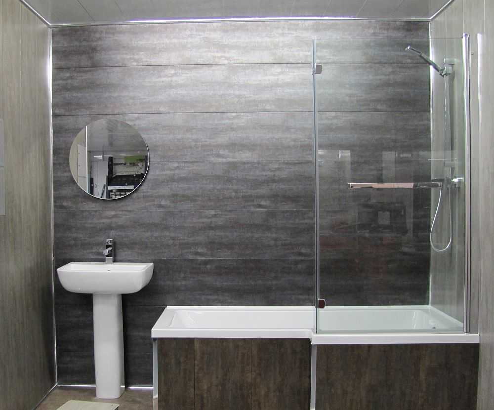 Pictured is a combination of tiles and pvc panels