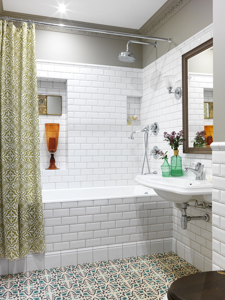 This option is the most economical, since only the area above the bathroom or the surface around is laid out with tiles. shower room... If you want to create an accent, choose tiles that contrast with the walls, and if you dream of a calm, enveloping interior, purchase materials that are as close as possible in shade.