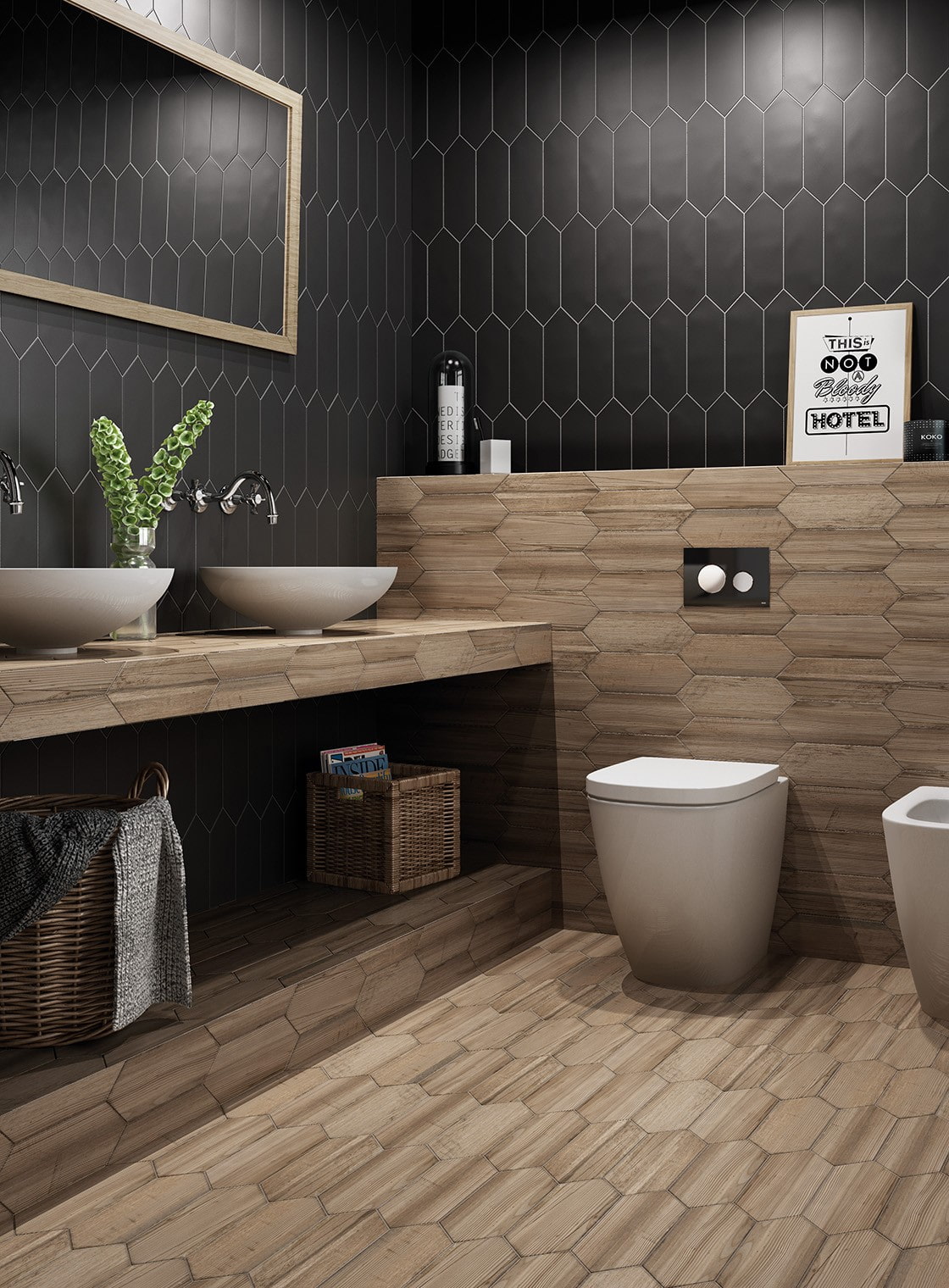 What can be combined with wood-effect tiles?