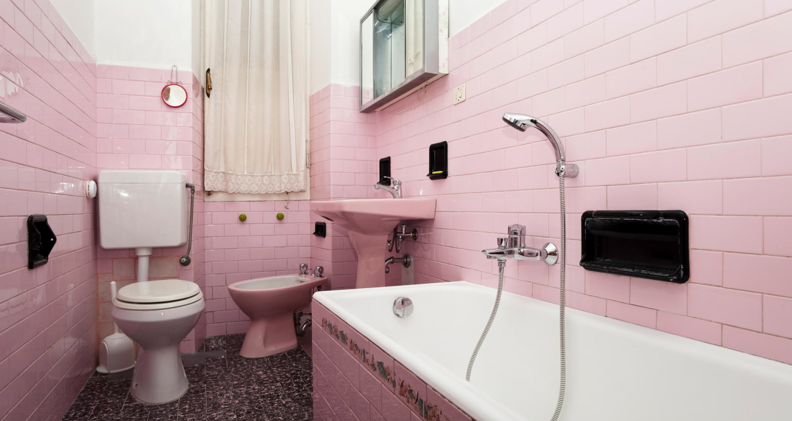 See the instructions on how to quickly and on a budget to update the interior of an old bathroom by painting the tiles on the walls and floor: