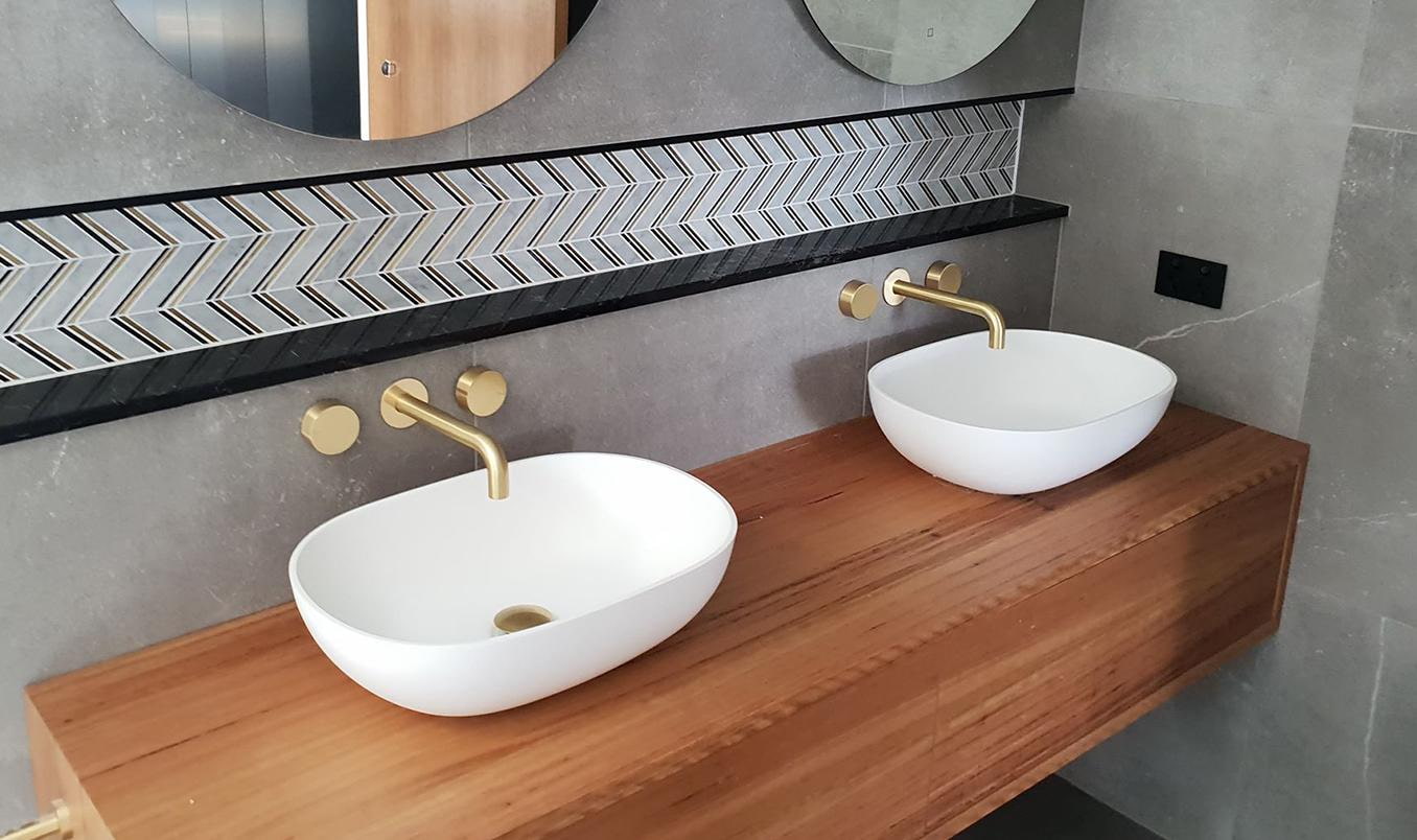 The first two types of mortise sinks are very easy to use - there is a maximum of free space on the countertop for placing hygiene products, and it is easy to brush away splashes directly into the bowl. But bathroom furniture should be made of a material that is more reliably protected from moisture than wood or MDF.