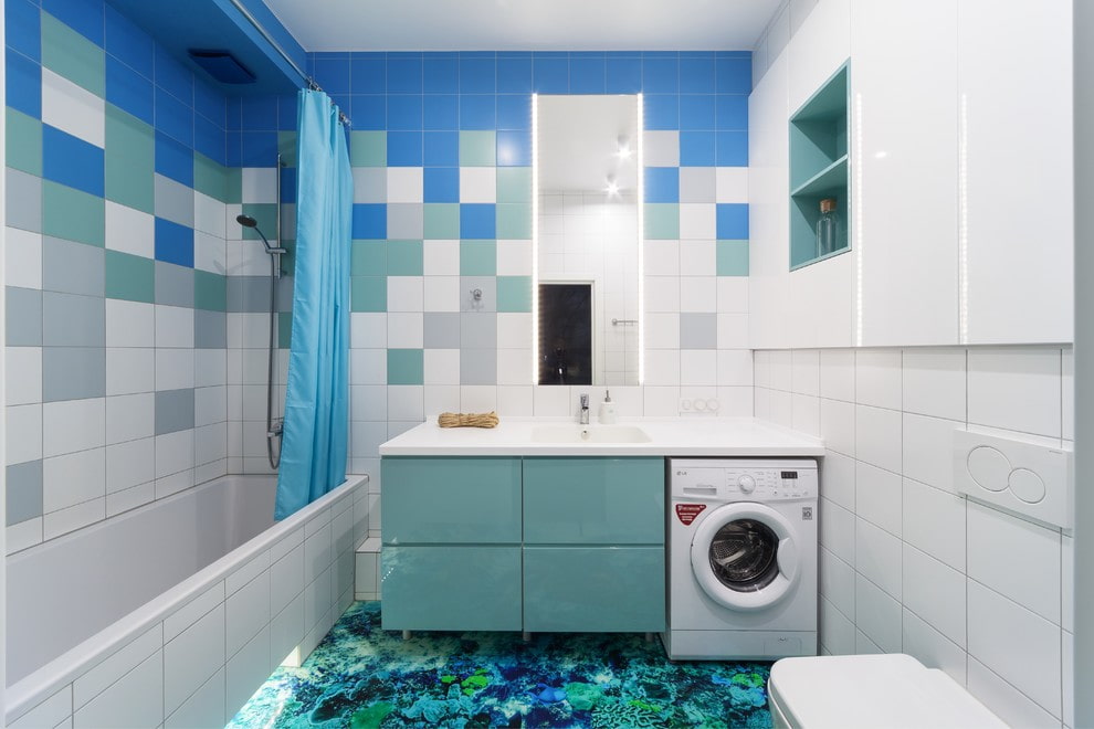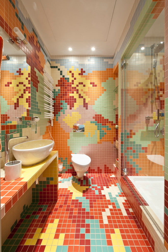 Also, the splash layout looks no less interesting or patchworkthat includes multi-colored tiles in a chaotic or orderly arrangement.