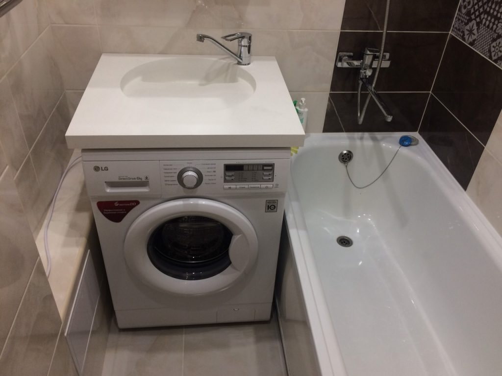 An excellent solution for small bathrooms... For ease of use, its dimensions should be slightly larger than the machine's box on each side. The space required for the installation of the drainage system is minimal, 10-15 cm will be enough, so all family members can use the washbasin.