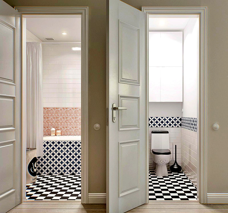 Saving money is often a fundamental factor in choosing combined bathroom layout... In this case, you will not need to spend money on additional finishing of two walls and you will not have to fork out for a second door.