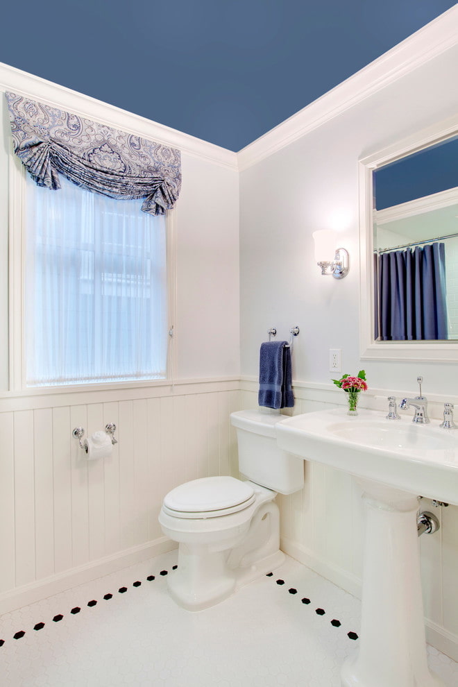 One of the main advantages of paint is that the ceiling can be of any color: just add color. An unusual accent will add originality to the room.