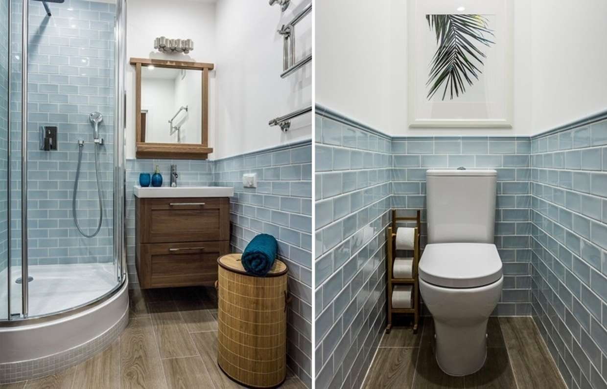 Glazed rectangular tiles, which are easy to maintain, were chosen for the wall cladding. In addition, the gloss reflects light well, visually increasing the space. The tiles were installed only in wet areas: the walls were painted on top with Dulux washable paint.
