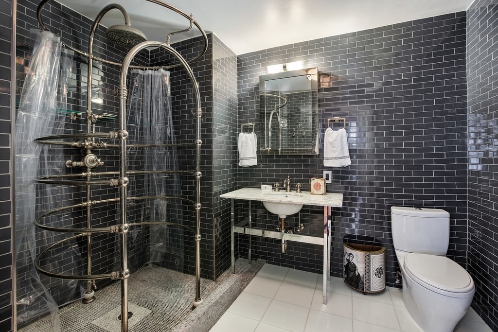 IN loft style use tiles with a texture imitating concrete, stone or metal surface. Combinations with white hog-type tiles, as well as with brick and metal elements are welcome.