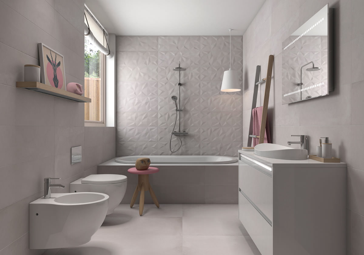 Should you combine gray tiles with tiles of other colors? It is usually recommended to “dilute” gray surfaces with white to avoid adding gloom. However, are gray interiors really gloomy? Gray itself is very rich in shades. It can be warm and cold, light and dark, beige or bluish, have many different tones.