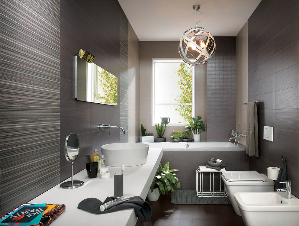 To make the bathroom seem larger and lighter, try to make large interior elements lighter. So, a small cabinet can be black, but it is better to make a large one light gray, white or even mirrored. Large area countertops should be in light colors. Try to maintain a balance between light and dark elements so that the interior turns out to be harmonious.