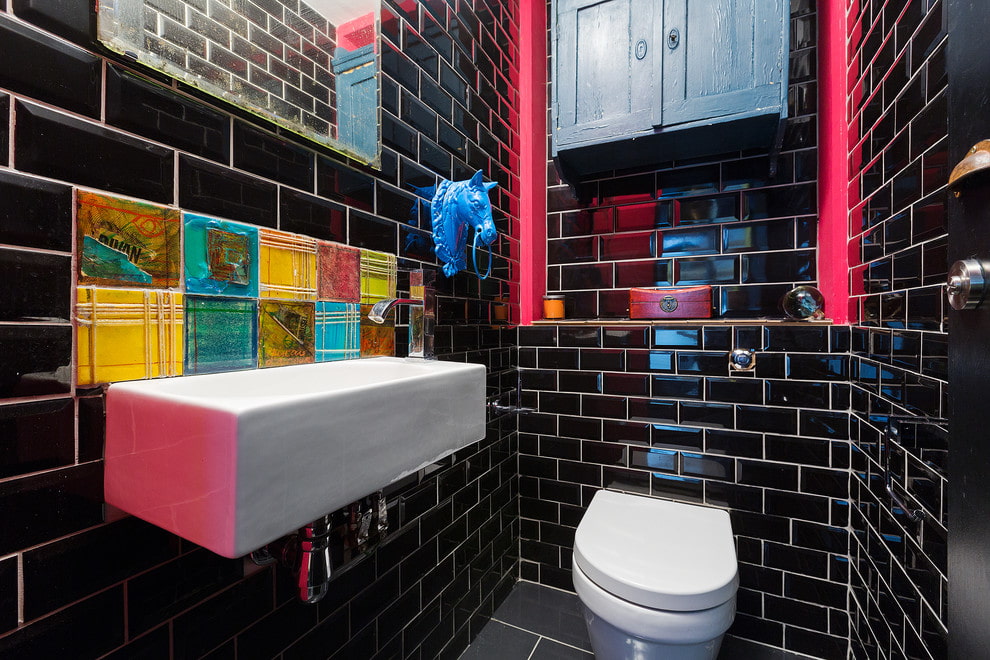 It is distinguished by a very aesthetic appearance and due to the front part, which harmonizes and merges with the walls in the interior, it creates the feeling of a holistic plane, behind which there is actually a secret cabinet with a lot of things. Quite often, when decorating a toilet with tiles, the doors of a hidden box are also decorated with an identical cladding.
