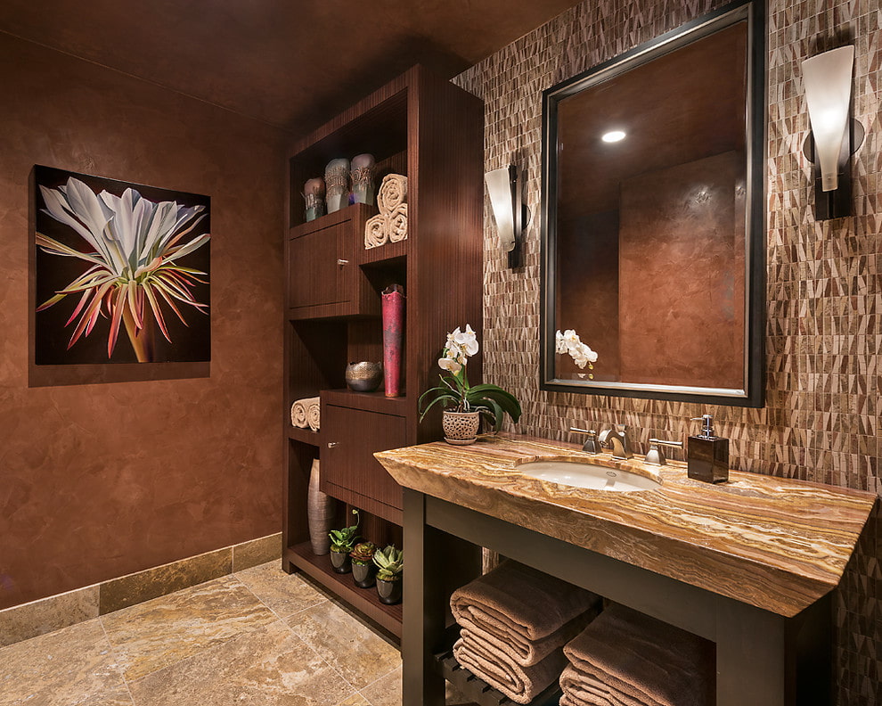 Such designs add a special style and comfort to the setting and are mainly used to accommodate various decor, for example, it can be a vase of flowers, wicker baskets, jars of cream or soap, etc.