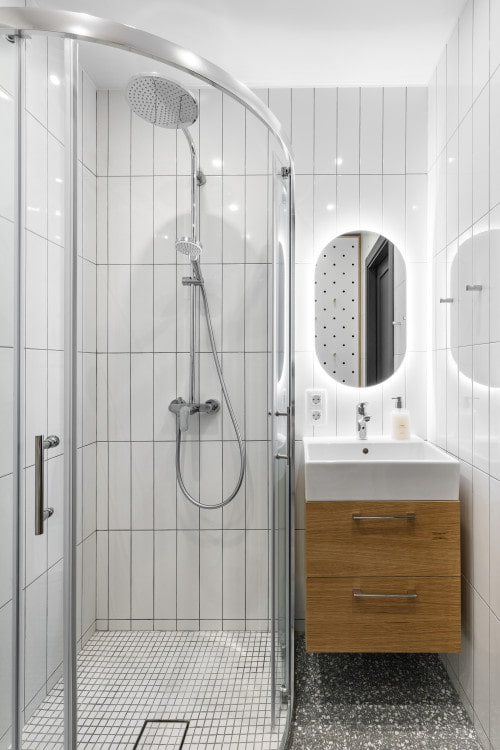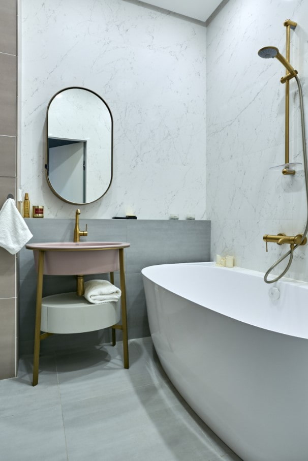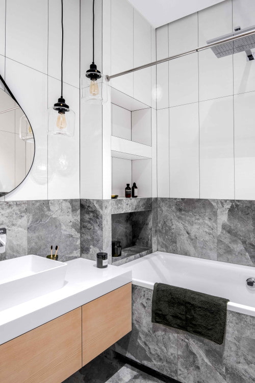 So that the design of a bright bathroom does not associate with a hospital, we recommend that you dive into the study of the light palette: you will be amazed at how rich it is.