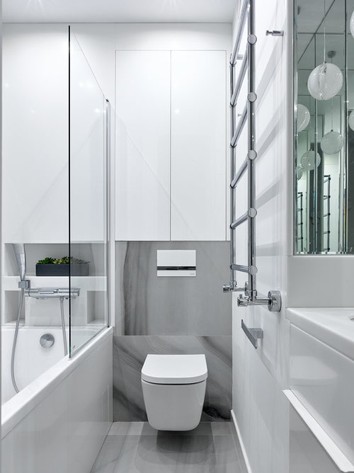 - Replacing natural light... Bathrooms usually do not have windows - this drawback is compensated for by light colors and glossy, light-reflecting finishes.