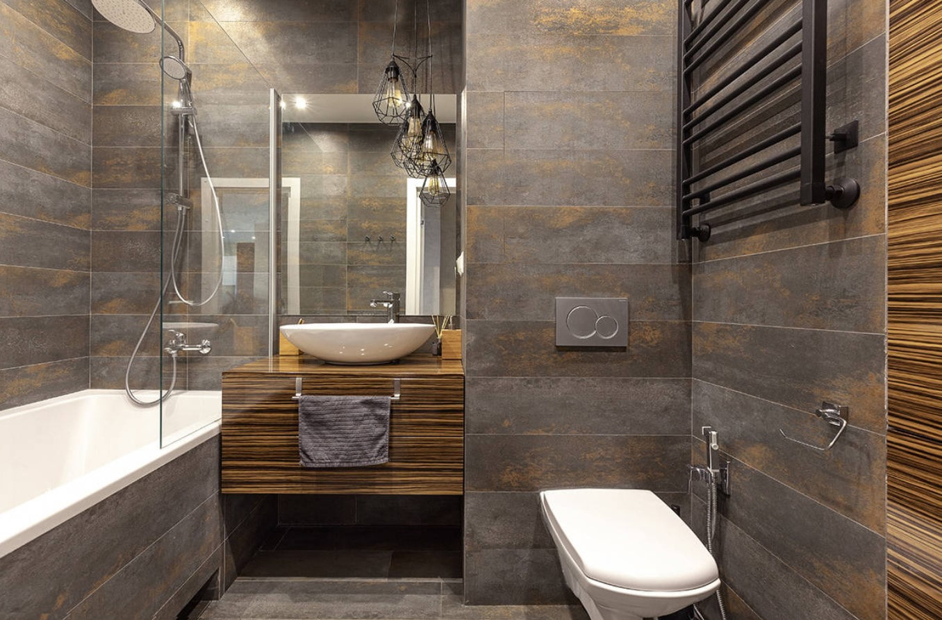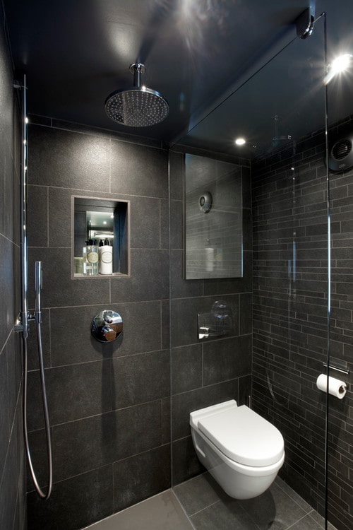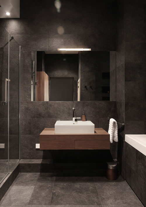 Look at the photo with the options for bathroom design in dark colors, choose the most suitable one and implement a bold decision at home!