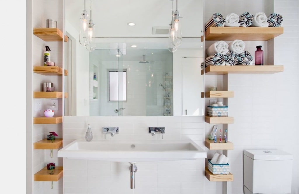 But this option is categorically not suitable for large families or families with children., since there will be much more items on the shelves and it will lose its aesthetic appearance. Moreover, when trying to get another shampoo, the rest of the items will surely fall.