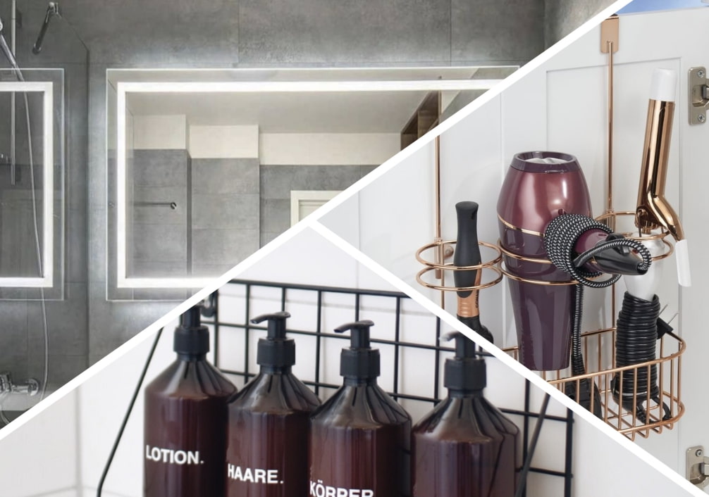 For other means, arrange sorting... Just throw out old, expired or long-unused funds, and hide the rest in the closet. Thus, "at hand" you will have only the necessary items, and the bathroom will look much tidier.