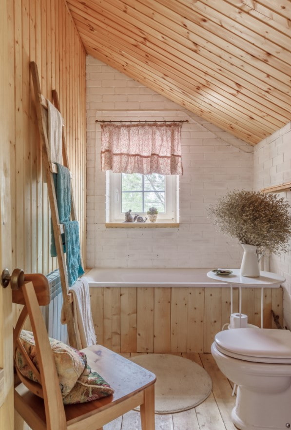 Do not give up this method of finishing in the bathroom if you really like it. It is not so difficult to prepare even wood for humidity, but you will get a design that you really like!