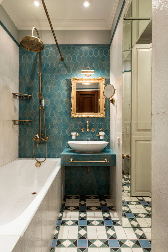 It is better to exclude a saturated range, or use it in minimal quantities. You can decorate the bathroom in blue, lilac, light yellow colors. Bright green is rare, but the malachite shade, on the contrary, looks noble and adds to the atmosphere of luxury.