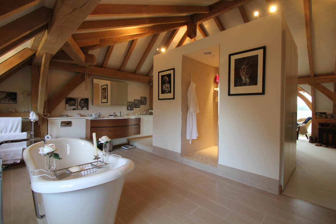 Wood is often used in country-style bathroom design. It can be used for ceiling, floor or wall decoration. If the height of the ceiling allows, you can stretch wooden beams through it, this option is especially suitable for rooms in the French country style.