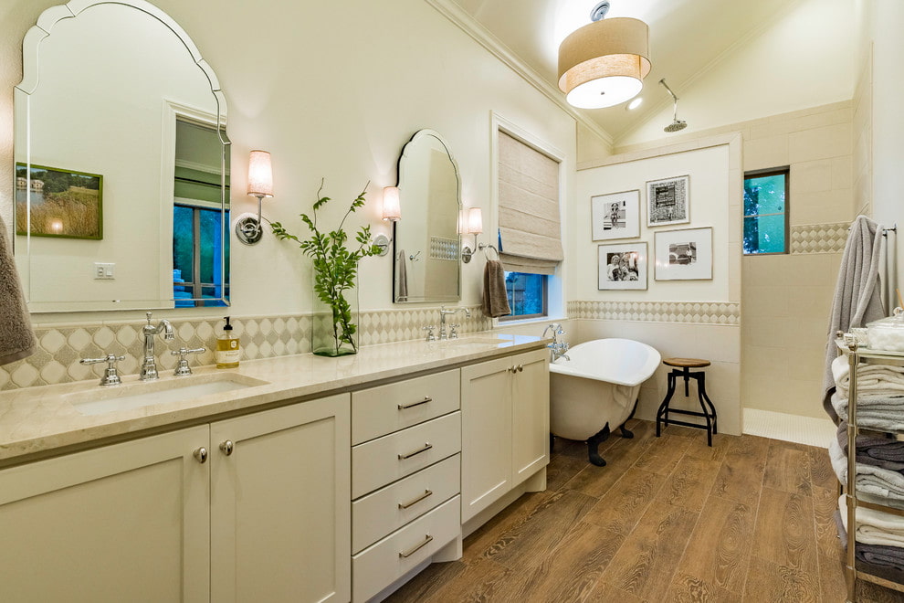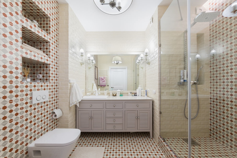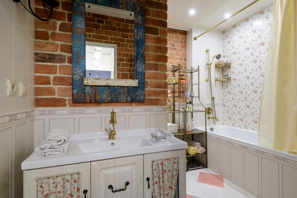 A Provence-style bathroom has a natural aesthetic, a cozy and warm atmosphere, and is also a functional interior space with solid fixtures and fittings.