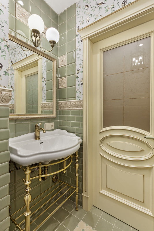 - Bath. A cast iron or acrylic font with high curved legs with a bronze, brass or nickel finish is suitable. In a private house, a rounded bathtub can be installed in the center or on a podium, turning the bowl into the main decoration of the decor.
