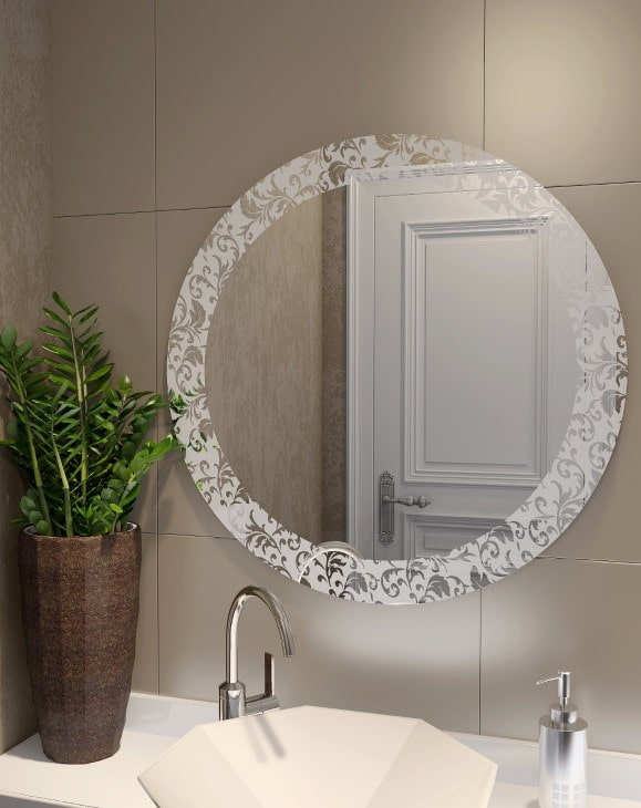 This sandblasting technique is especially suitable for decorating bathroom mirrors, as these patterns are not afraid of moisture, steam and limescale. Various, well-chosen drawings will significantly transform the space and emphasize its style.