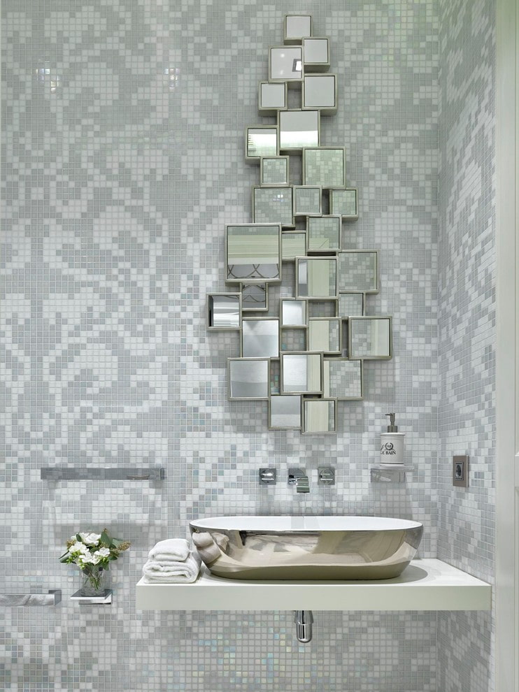 A mirror placed in a recessed area, near a shower, bath or sink, will harmoniously fit into the overall interior styling and will become an effective addition.