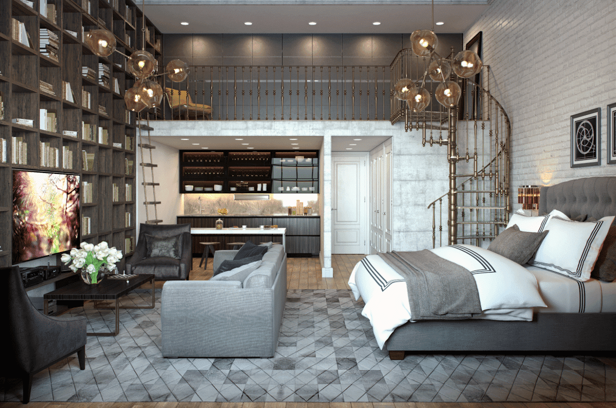 The loft-style studio is characterized by unlimited freedom and the spirit of adventurism. Such a creative interior solution is an indicator of excellent original taste and active life position.