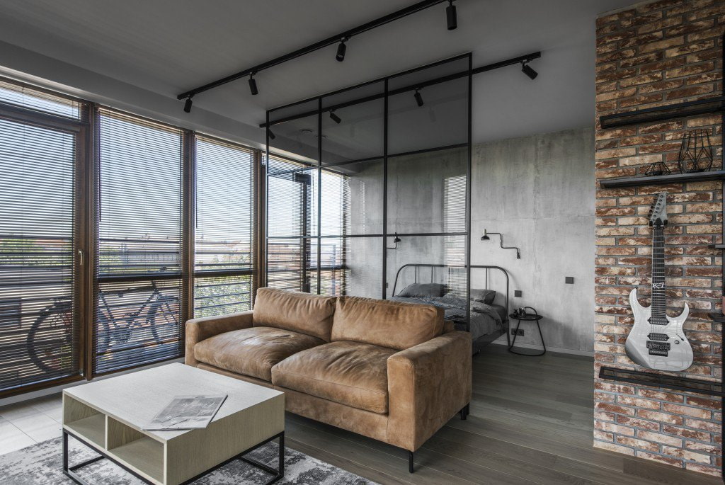 When choosing cladding for a studio, it is important to consider that the central idea of urban style is the ability to combine raw surfaces with modern finishes and other interior elements.