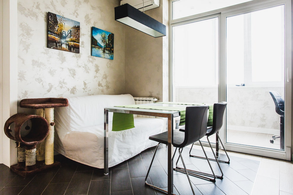 Before renovation, it is worthwhile to draw up a competent design project in advance. Do not forget about functional furniture: to free up more space, you can use a folding sofa, roll-out or folding tables, folding chairs.