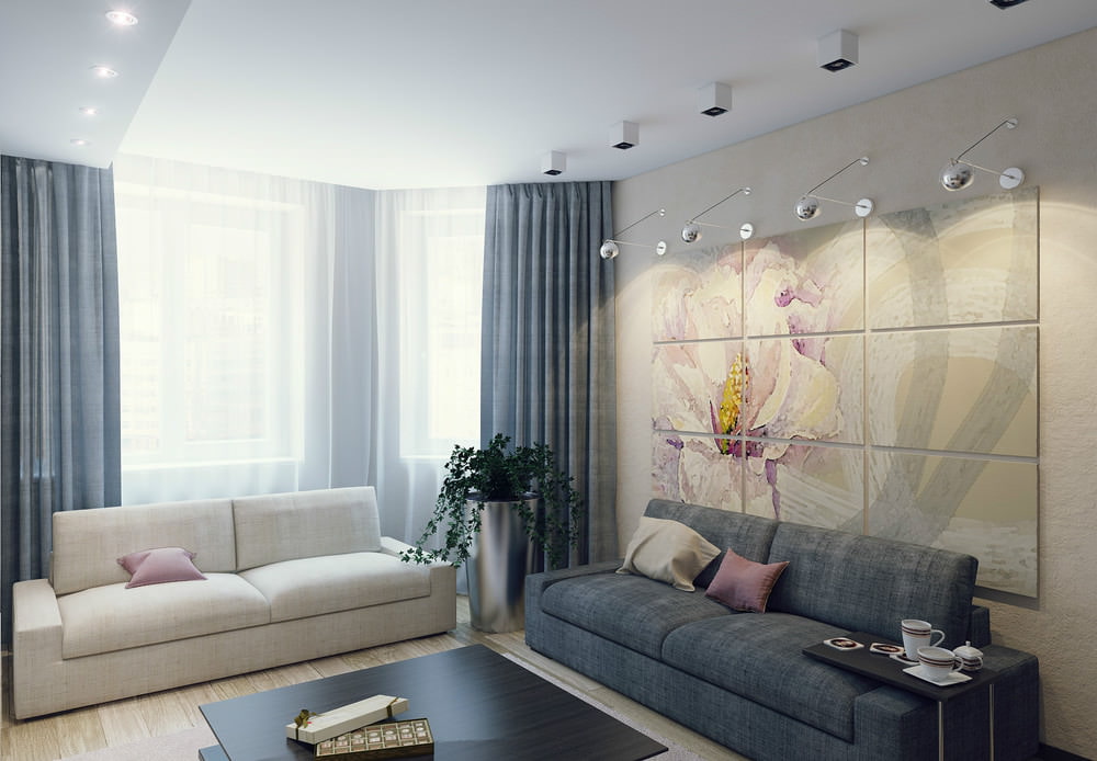 For the correct choice of the most favorable design method, first of all, they take into account all the features of a one-room apartment, its specific layout, the presence of niches, protrusions, the placement of windows, etc.