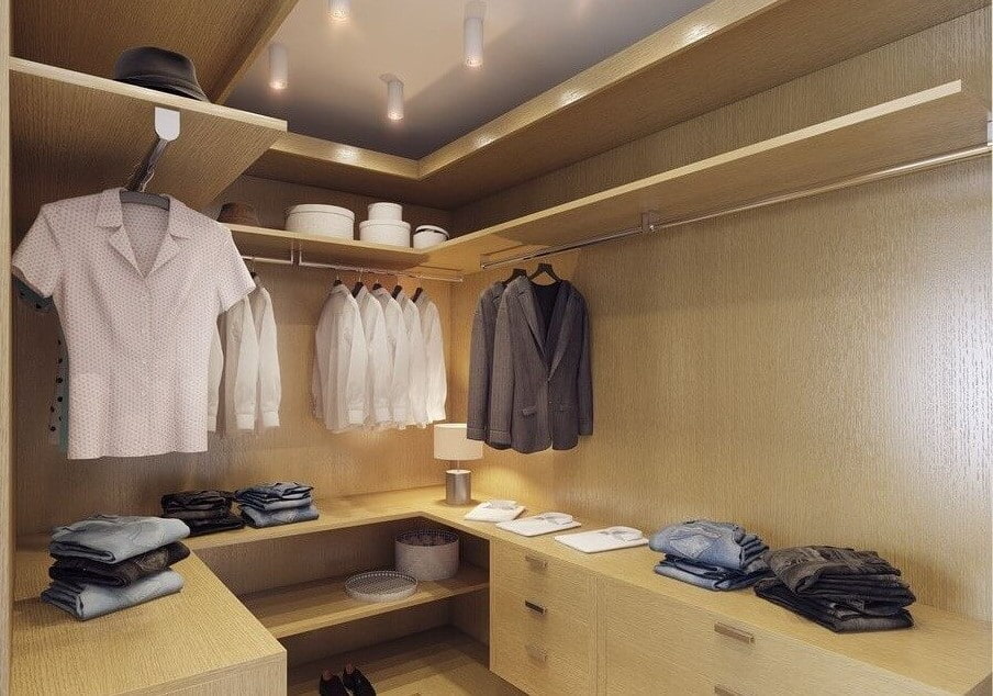 The main purpose of a dressing room with a small area is the systematic storage of things in large quantities. Most often, an ordinary pantry is converted into a given room, equipping it with thoughtful storage systems. It is desirable that the design of even such a small space does not stand out from the general style of apartment decoration.