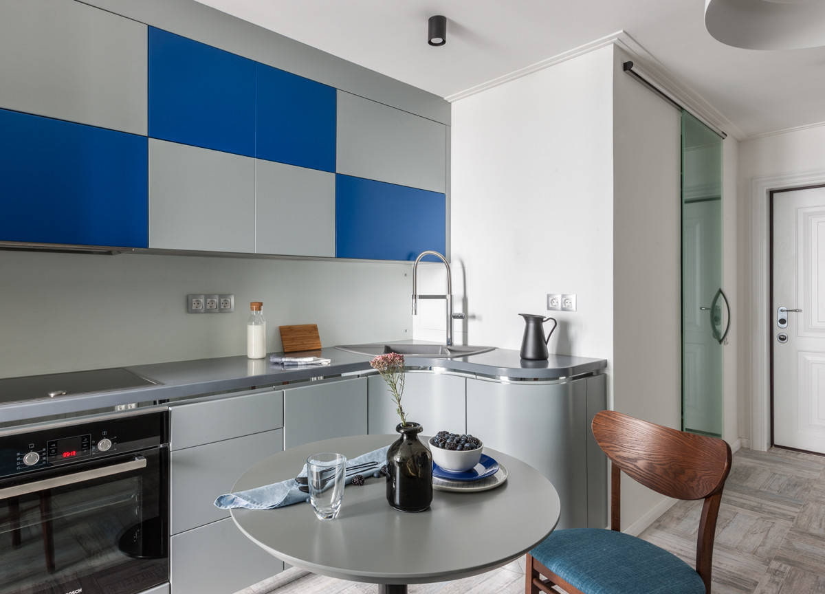 Another technique that has become a commandment in the design environment: "The fewer the corners, the freer the room seems." In other words, if you use rounded furniture, the kitchen will look softer and more spacious.