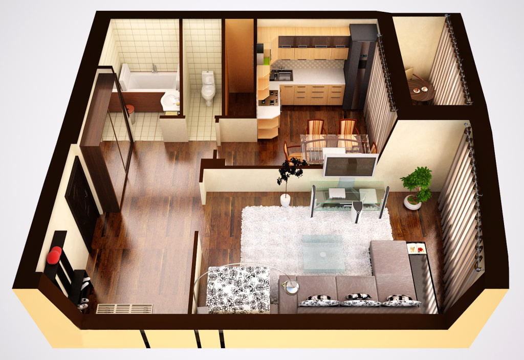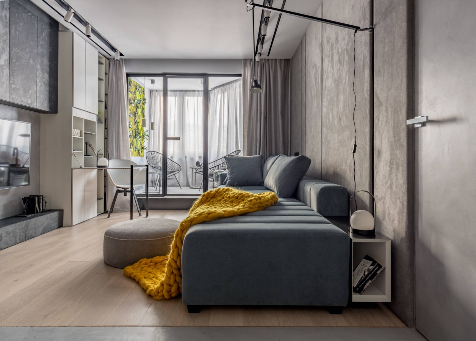 - One person or a couple can choose a free layout and live in a spacious studio apartment.