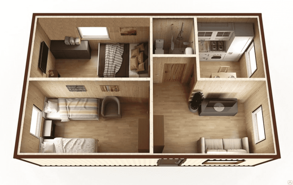 - In case the family has two children, 60 sq. meters can be divided into four, allocating each child a room.